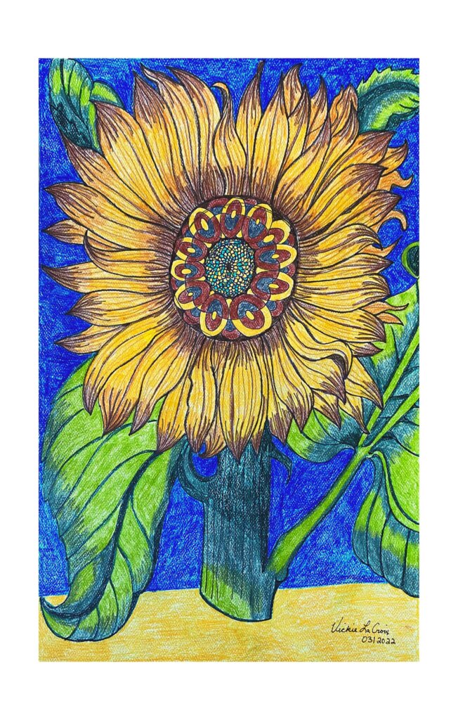This gorgeous Sunflower is a 11 x 17 ” drawing by Vickie LaCroix unframed and can be mailed.